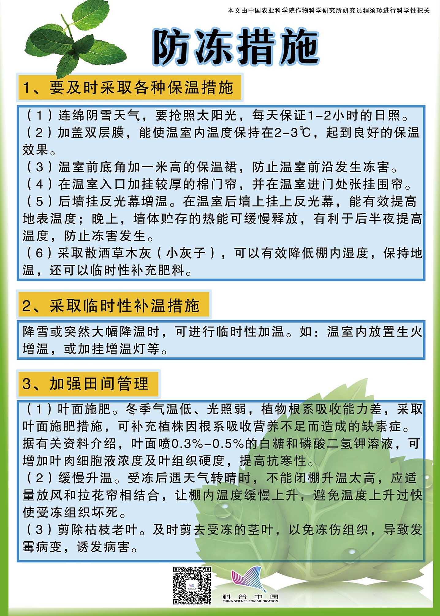 【科普中国】日光温室防冻减灾补救措施