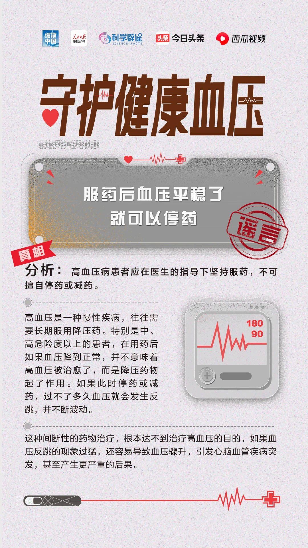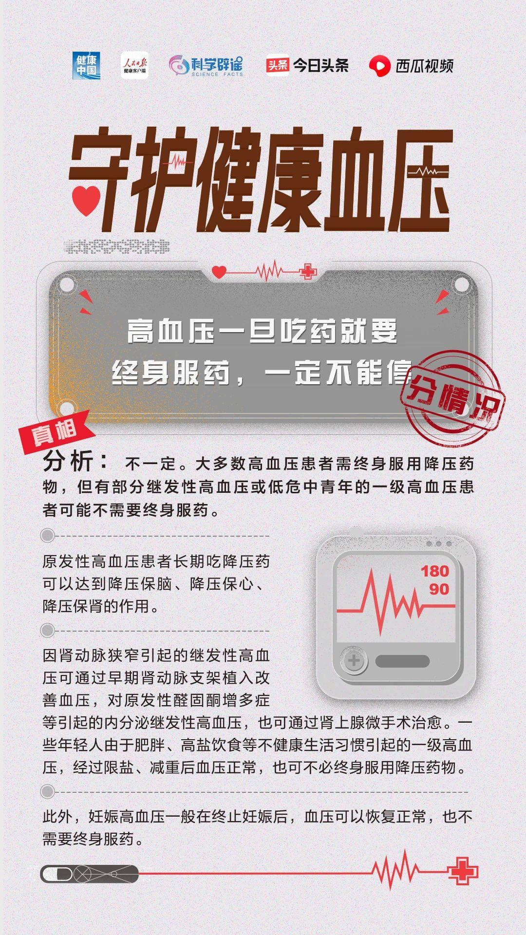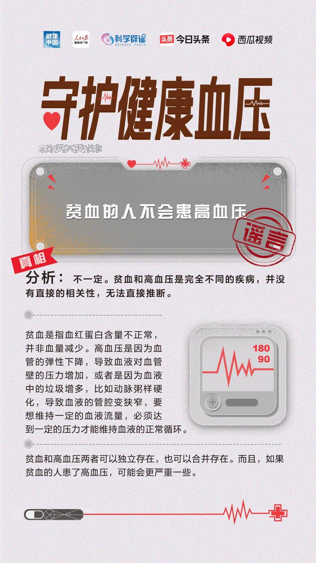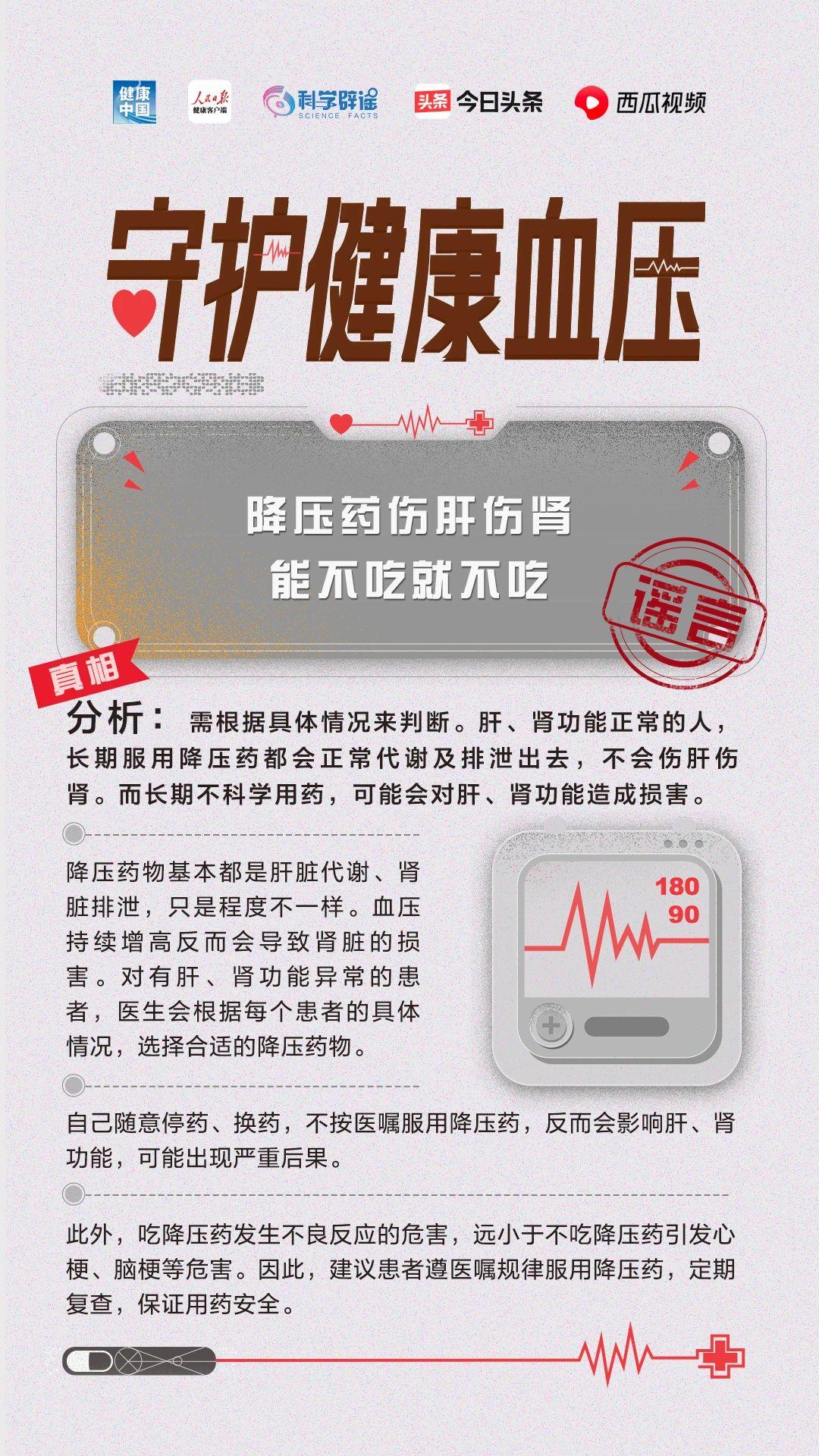 降压药伤肝伤肾,能不吃就不吃?高血压一旦吃药就要终身服药吗?贫血的人不会患高血压?通过掌纹可以诊断高血压吗?……5月17日是世界高血压日,科学辟谣联合健康中国、人民日报健康客户端、今日头条共同发起“守护健康血压”活动,联合权威专家,为你解读关于高血压的误区!