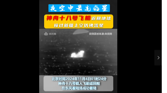 夜空中最亮的星 神舟十八号飞船返回地球 掠过新疆上空仿佛流星