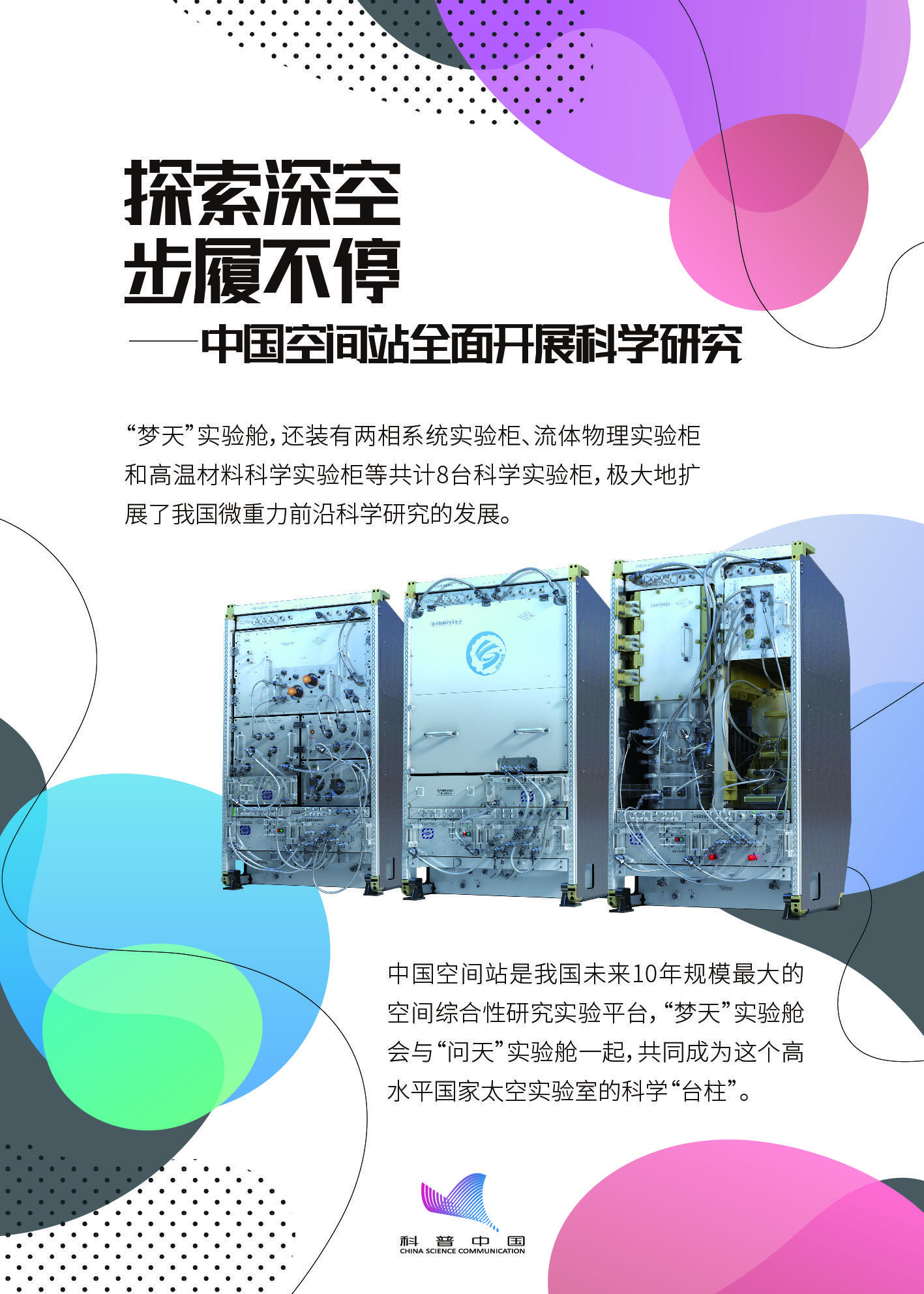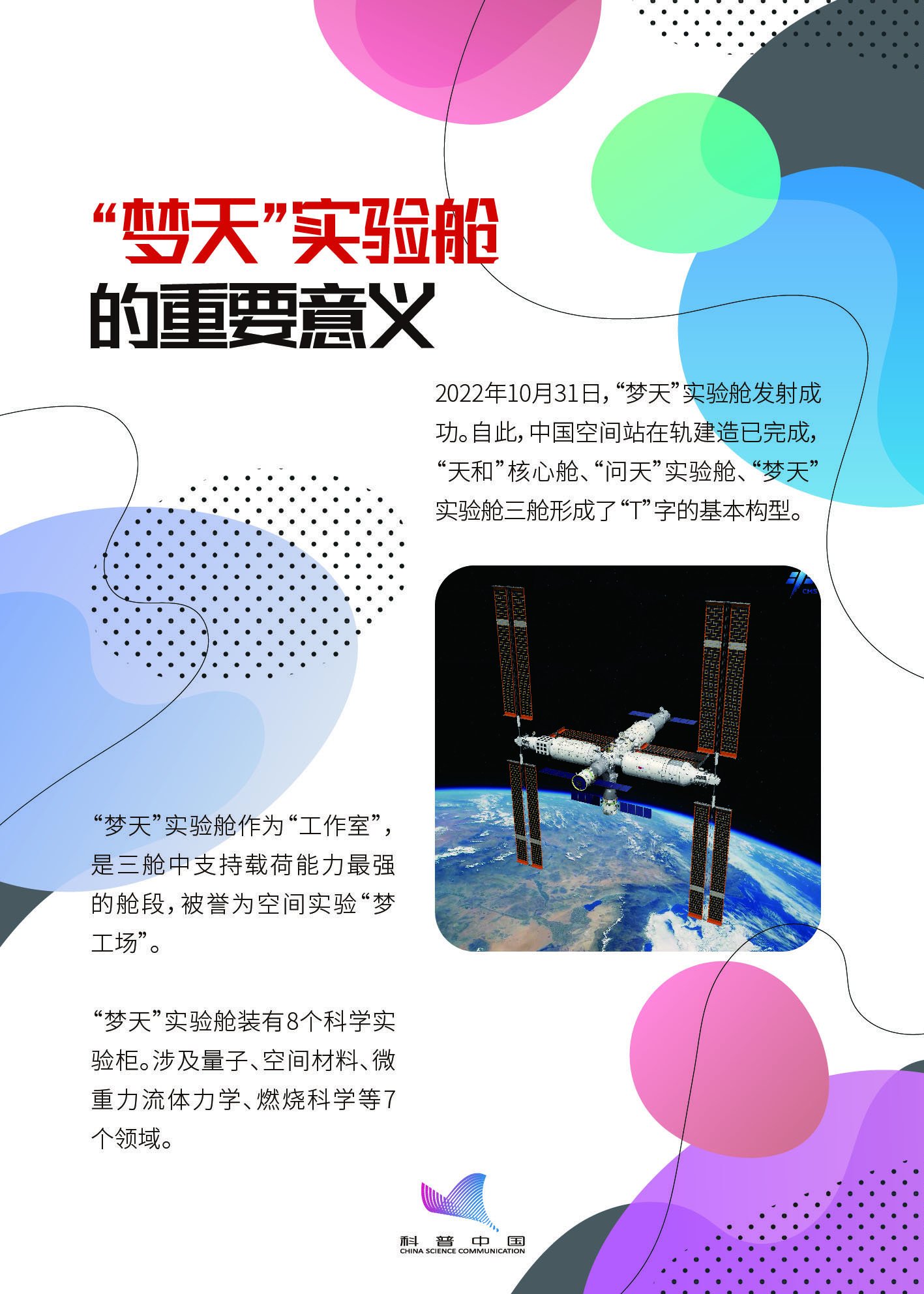 中国空间站的“梦天”实验舱装有8个科学实验柜,涉及量子、空间材料、微重力流体力学、燃烧科学等7个领域。