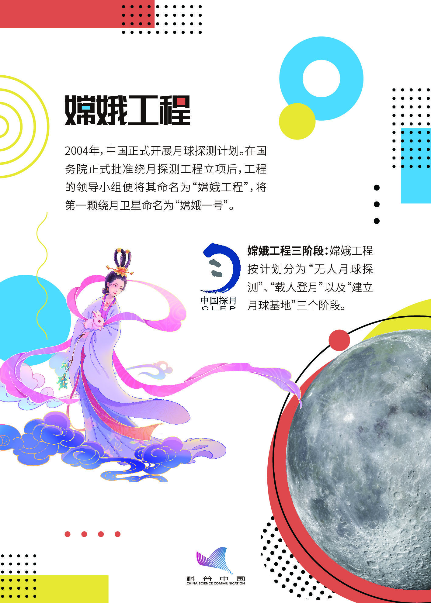 “嫦娥工程”是中国开展的月球探测计划,分为“无人月球探测”、“载人登月”以及“建立月球基地”三个阶段。