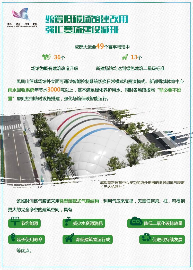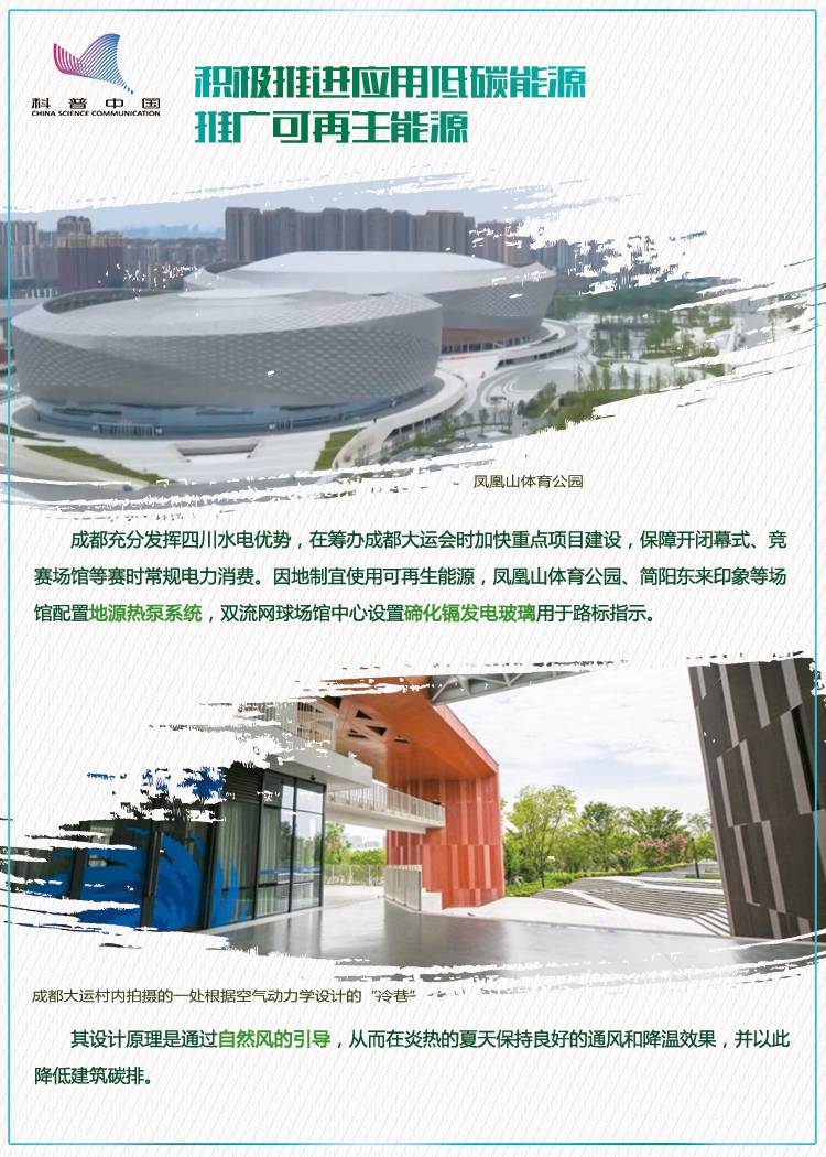 “绿色低碳”成都大运会主要体现在低碳能源、低碳场馆、低碳交通、低碳运营、低碳参与和推进赛事碳中和六个方面。