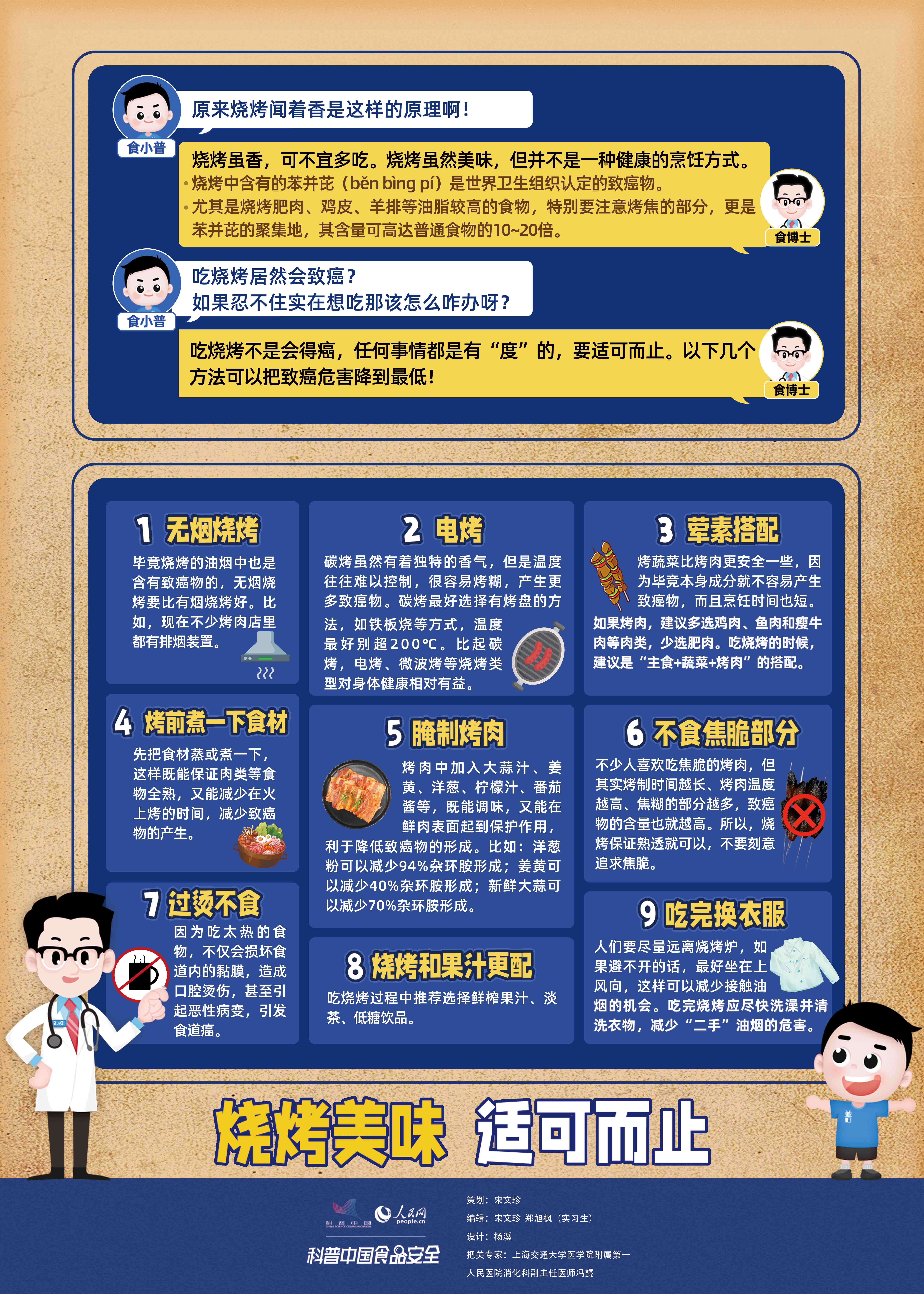 “小饼烤炉加蘸料,灵魂烧烤三件套。”近来,山东淄博烧烤火了。和亲朋好友一起“撸串”,这诱惑谁能顶得住?经常吃烧烤,会存在一些健康风险。别着急,专家教你几招,让你健康吃烧烤。