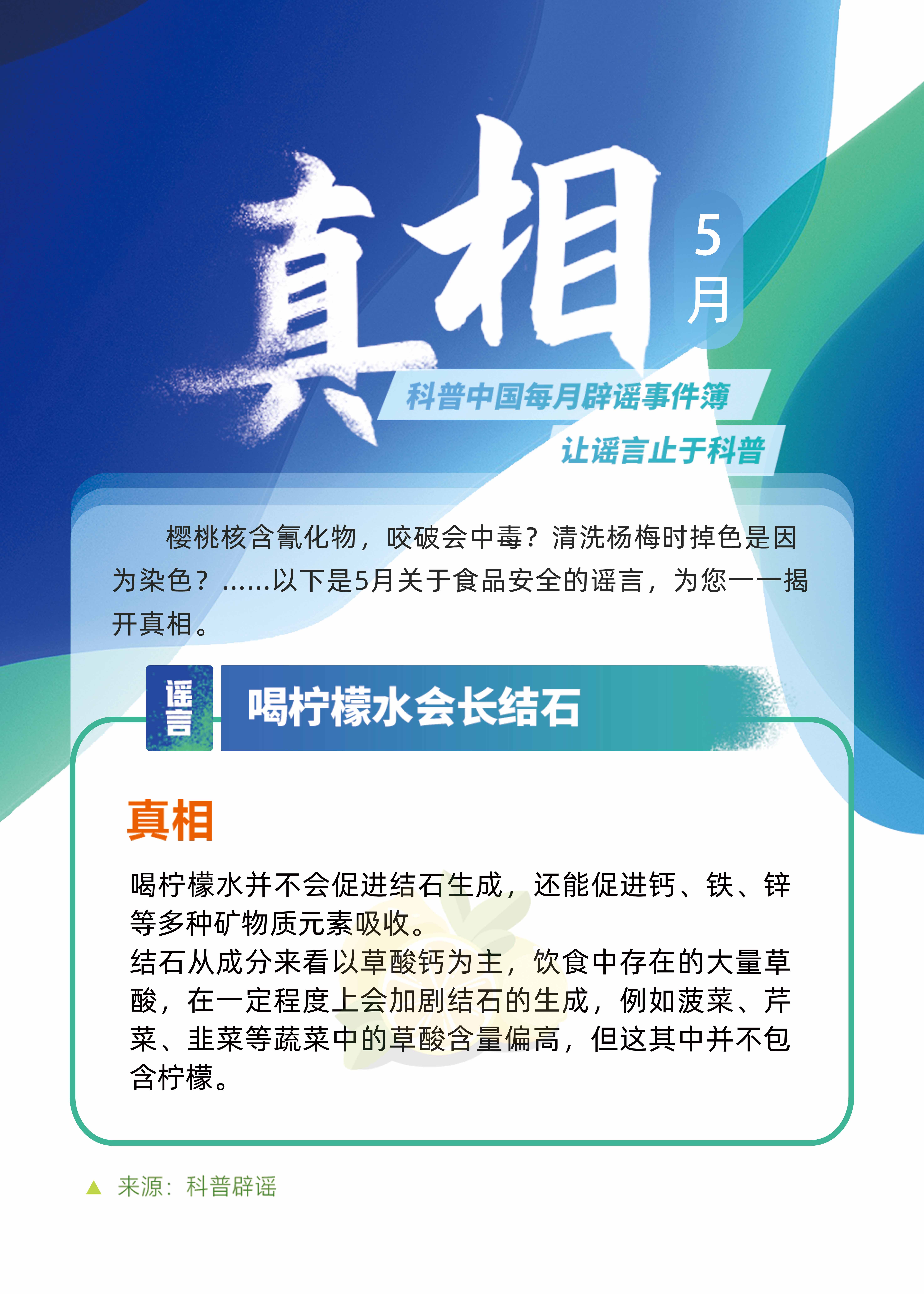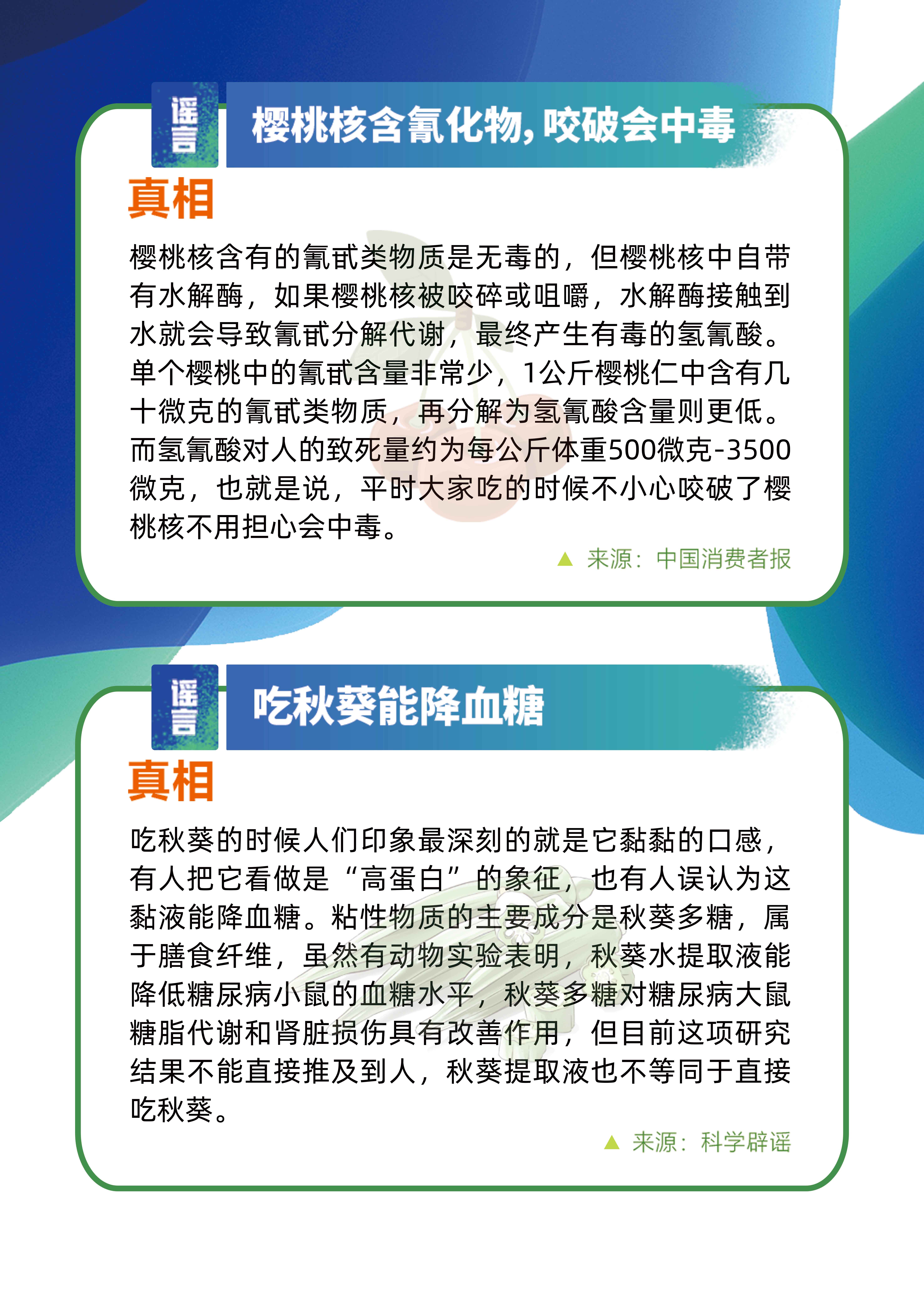 樱桃核含氰化物,咬破会中毒? 清洗杨梅时掉色是因为染色?......以下是5月关于食品安全的谣言,为您一一揭开真相。