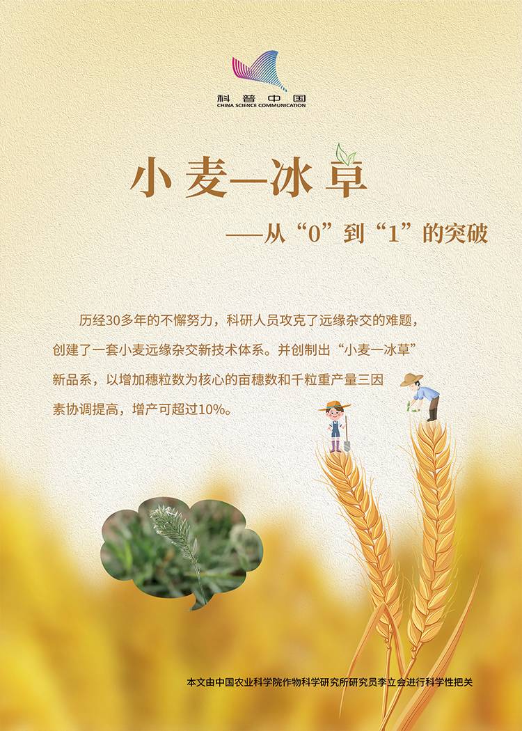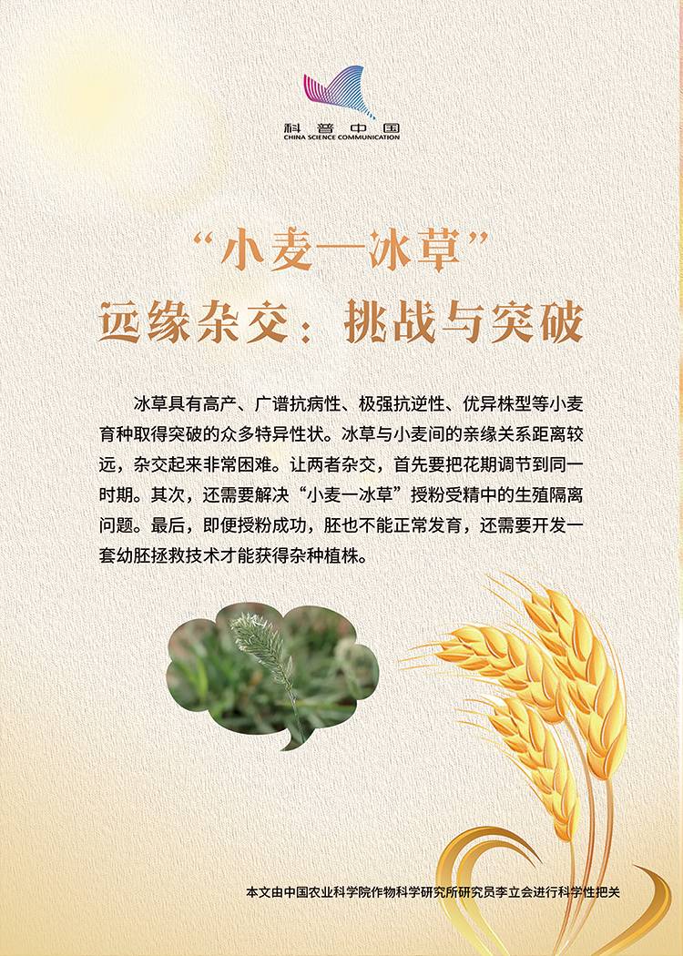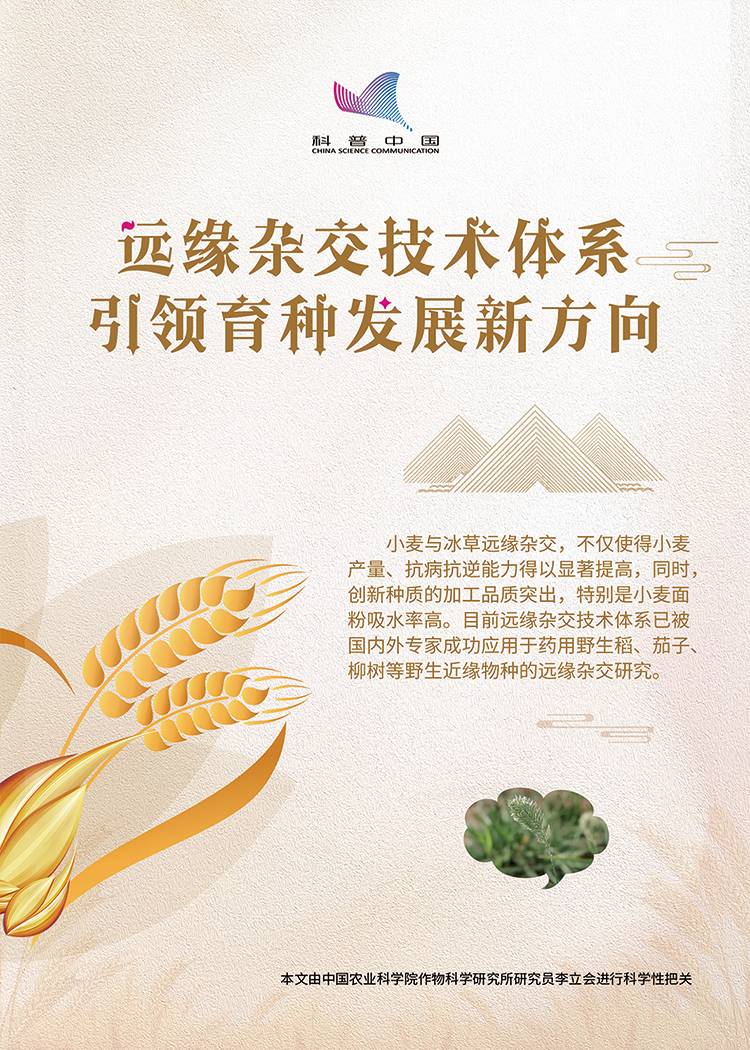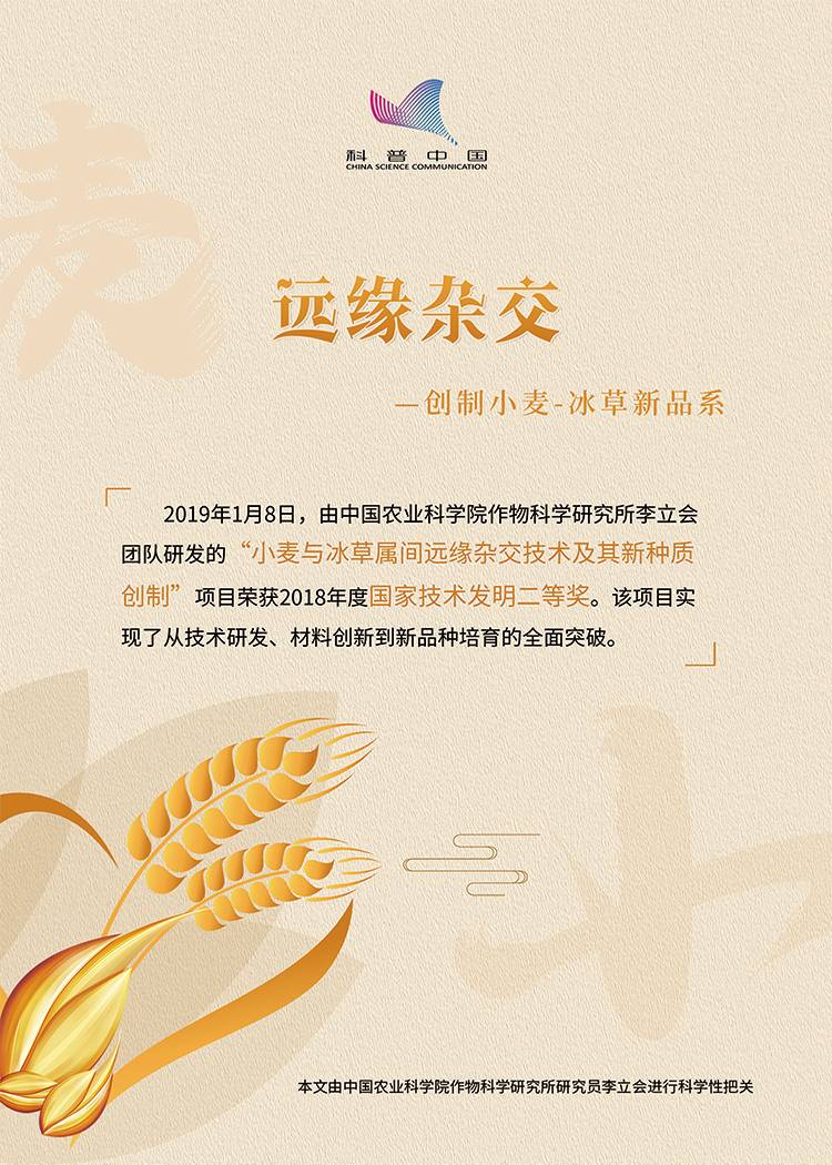 2019年1月8日,由中国农业科学院作物科学研究所李立会团队研发的“小麦与冰草属间远缘杂交技术及其新种质创制”项目荣获2018年度国家技术发明二等奖。该项目实现了从技术研发、材料创新到新品种培育的全面突破。