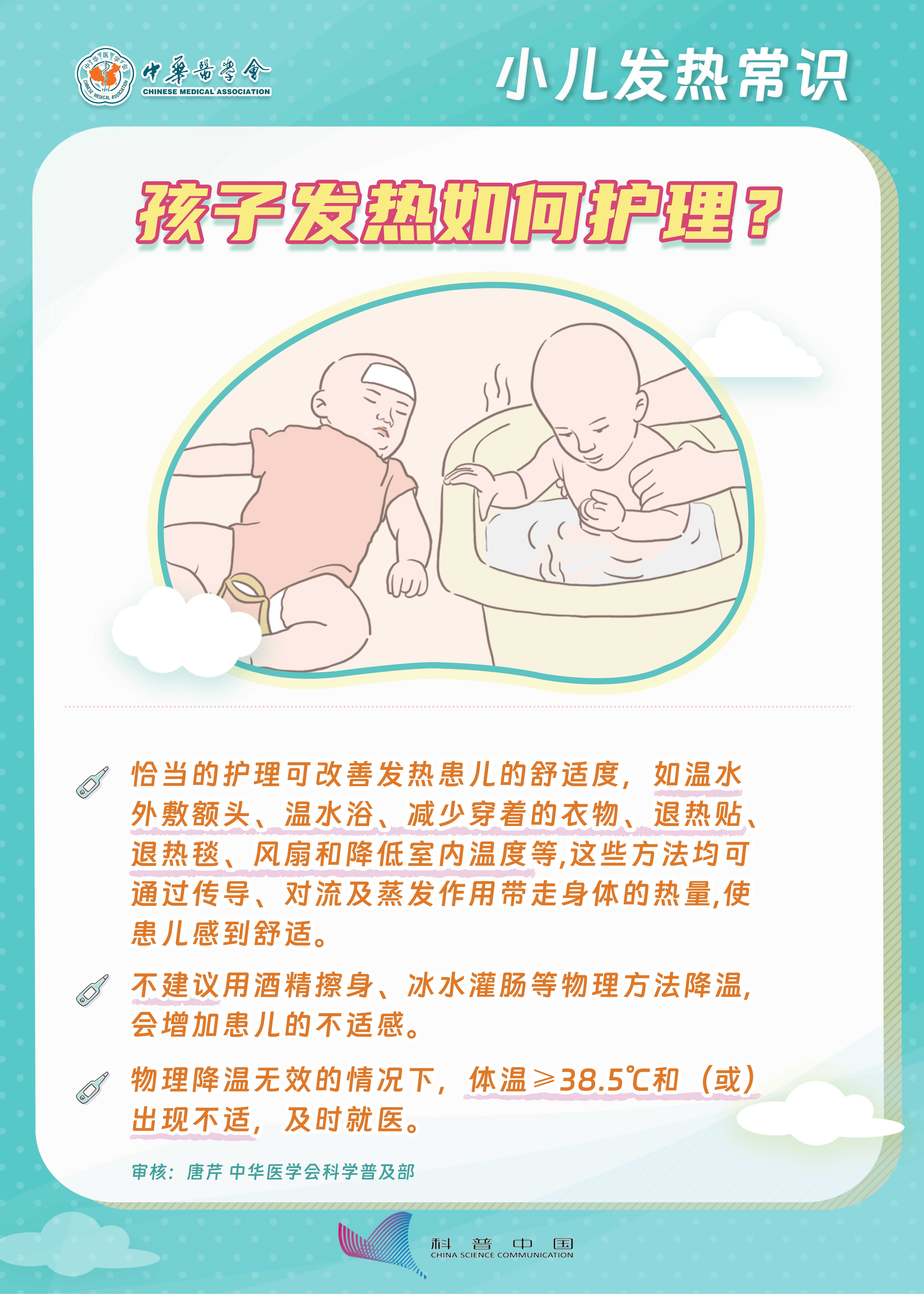 孩子发热比较常见,因为孩子年龄较小,身体调节功能较差,而且抵抗能力较弱,容易受到外界因素的干扰,多是由于细菌、病毒感染导致。 孩子发热要根据体温高低判断发热的程度,及时就医,给与恰当的护理能让患儿感到舒适。掌握一些基本常识,有助于疾病恢复。
