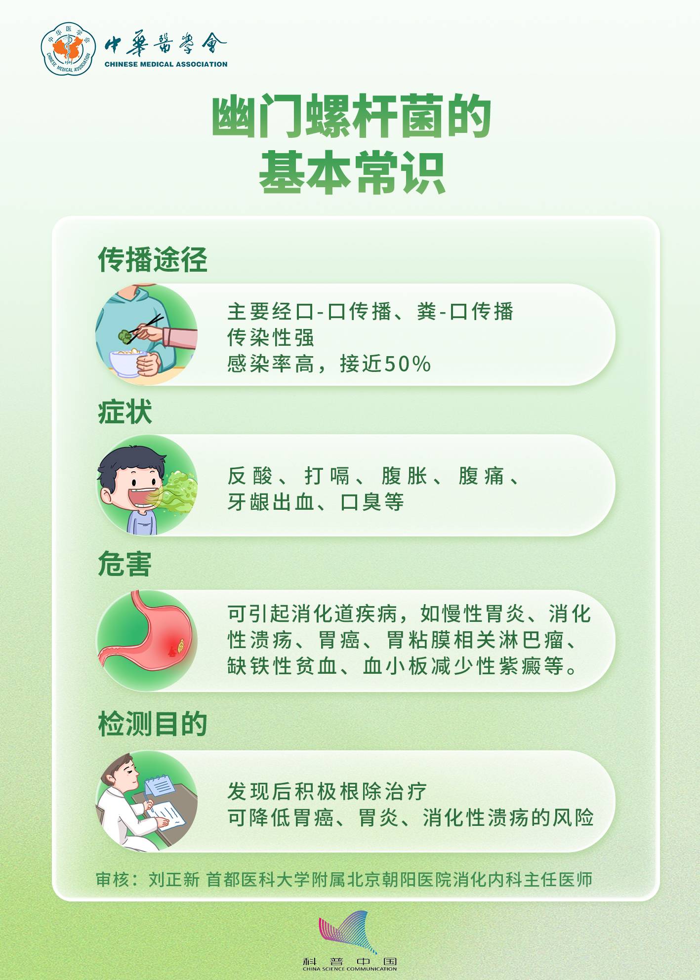 幽门螺杆菌感染是一种感染性疾病,全球感染率高达50%,与消化不良、胃炎、消化性溃疡和胃癌的发生密切相关。 幽门螺杆菌是通过什么途径传播的?有什么症状?如何检测?如何预防?一起来学习吧。