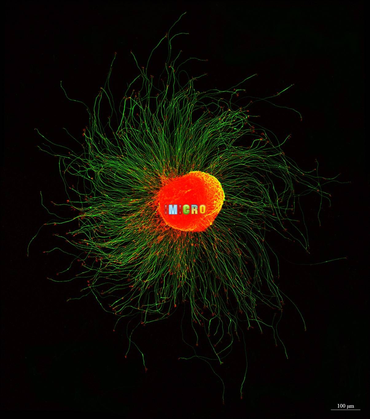 DRG经体外培养后,它向四周发出神经纤维,phalloidin与肌动蛋白结合,描绘出其细胞骨架。Tuj1勾勒出神经纤维,整个神经节犹如一朵绽放的花朵,展现出火热而温柔的魅力,仿佛是大自然中最美丽的一幅画卷。神经节在体外仍然体现出磅礴的生命力,如花在野,热烈温柔。