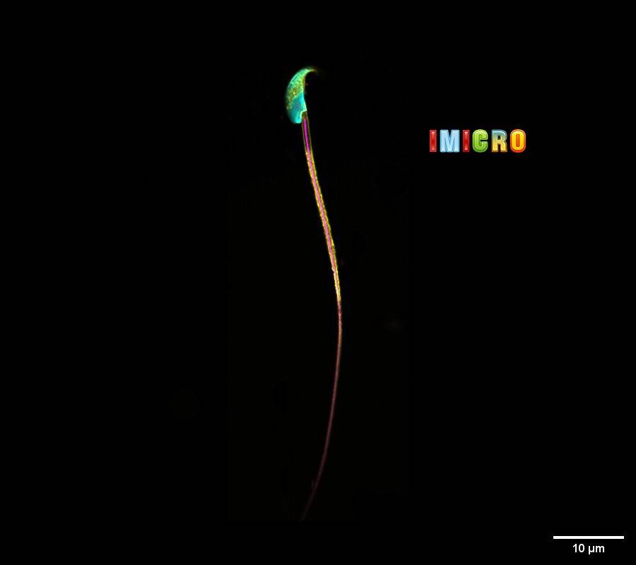 对小鼠sperm进行三色共聚焦成像,细胞核用SPY505-DNA进行染色,细胞膜用我们实验室开发的低光毒性膜染料PK Mem Red进行染色,微管蛋白用SPY650-tubulin进行染色,这也是小鼠sperm第一次获得人生中如此清晰的荧光照片。