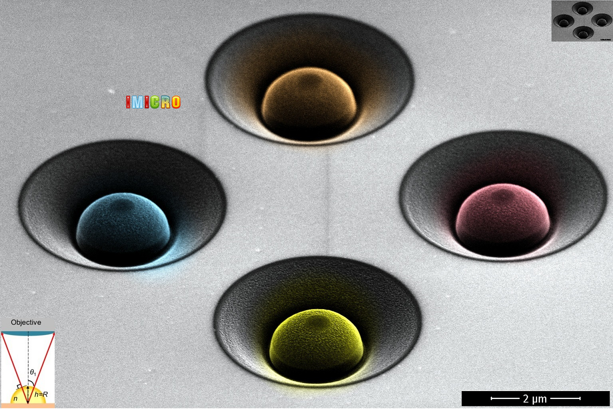 四个颜色各异的“冰淇淋”小球,它们正式的名称是“固体浸没式棱镜”,是应用于光量子计算和量子精密测量的非常重要的器件,可以指数级增强量子光源的收集效率。应用聚焦离子束直写刻蚀技术实现三维立体图形的加工,相较于常规光刻技术更加具有挑战性。通过程序设计给出离子束的运动轨迹,离子束按照设计的轨迹一层一层“打磨”样品,才能做出这些“可爱的”小球。本作品的意义在于展示当前科技领域在微观尺度的加工制造能力。