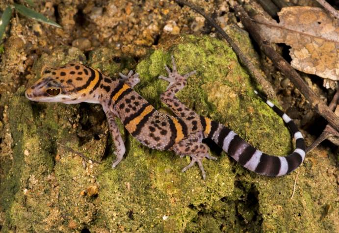 霸王岭睑虎是海南岛睑虎家族的颜值担当,它的虹膜为红色,瞳孔垂直,酷似恶魔的眼睛,散发着威严的气势,被称之为“恶魔之瞳”,生动地诠释了海南热带雨林里的神秘和危险。霸王岭睑虎头背呈棕褐色,躯干及尾背呈暗紫褐色,均染有少数较大黑褐斑,喜欢阴冷潮湿的环境,常于夜间出行,以昆虫为食,通常栖息于火山岩或石灰岩地区,因而覆盖有丰富热带常绿森林的大面积的喀什特地貌区,是它们的重要栖息地。