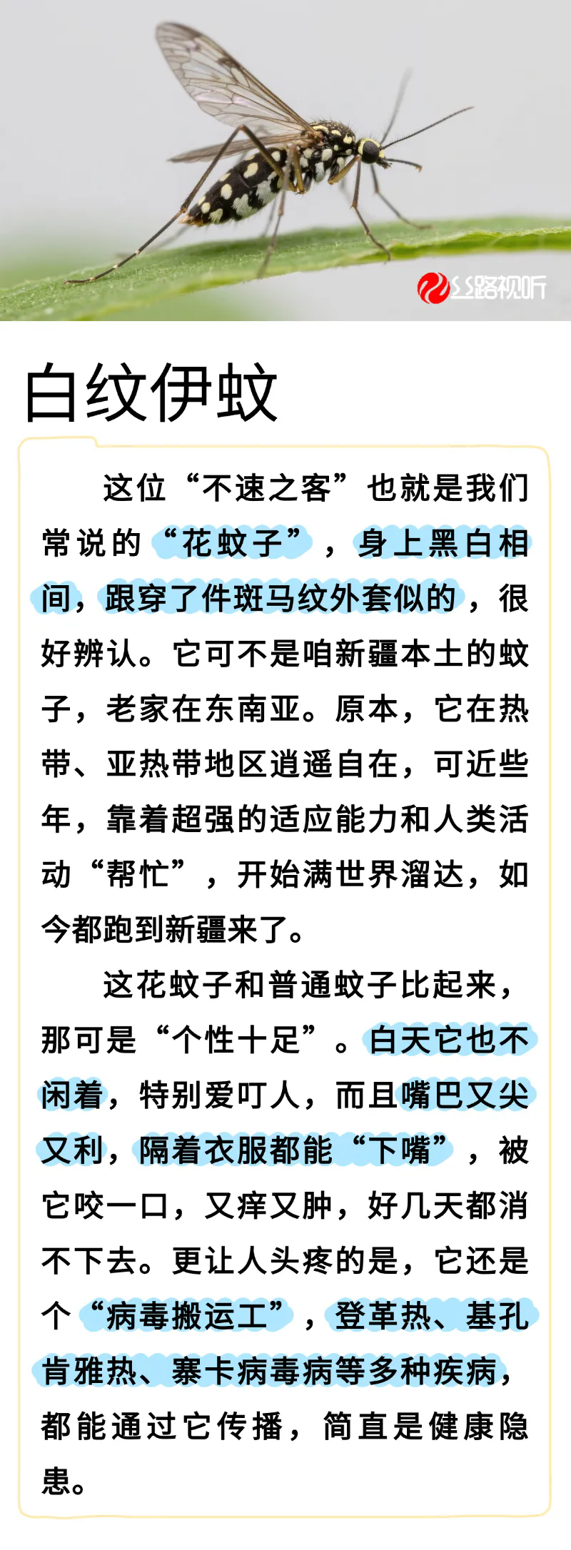 关于白纹伊蚊 新疆朋友该知道的防蚊灭蚊知识