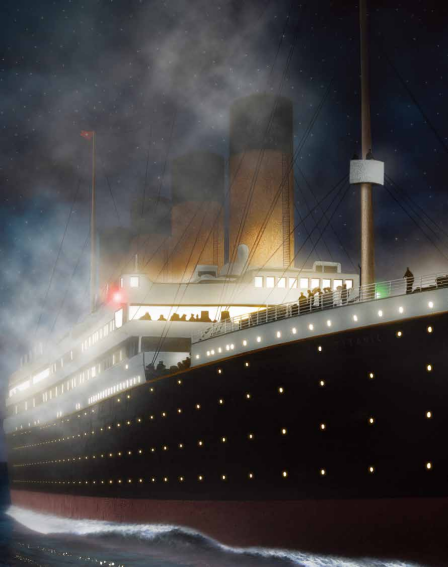 泰坦尼克号裂成两半并沉没,夺去1500名乘客和船员的性命。