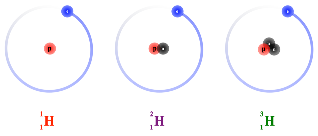 氢元素的三种同位素,从左至右依次为氕、氘、氚,其中的氕在很多场合下沿用“氢”这个叫法,本文中的氢皆为氕,即氢最常见的同位素