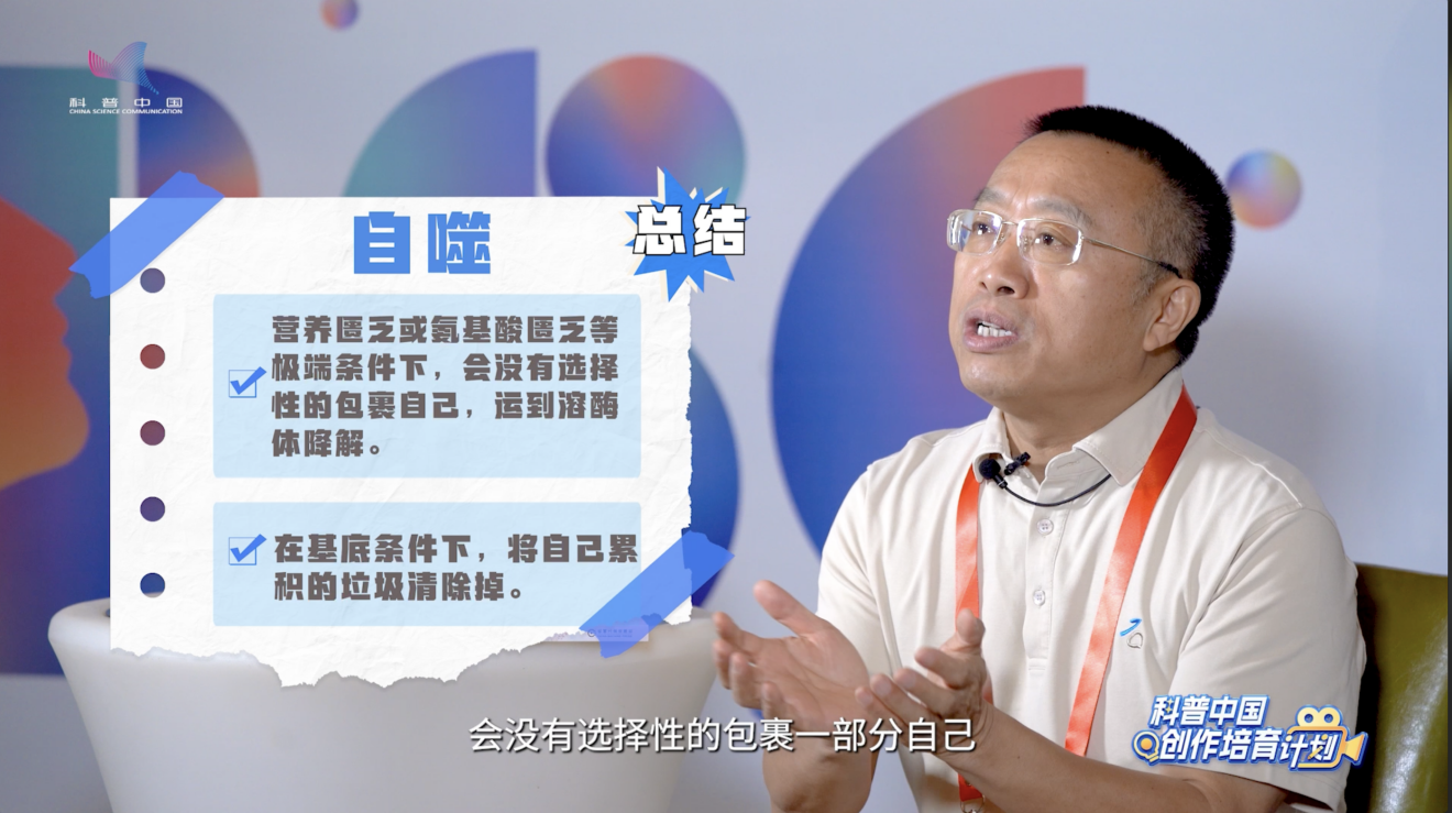 还有一个原因是,比如说馒头我们都很容易吃,但如果把馒头放到-80度以后,这个时候它变得很硬你可能就很难吃下去了。这就是说在神经退行疾病里面,很多蛋白质聚集体它会变得像一种固状形态,那么细胞就吃不下去了,或者一碰到它自噬膜本身就开始受损伤,这样的话很多蛋白质聚集体它就逃逸了,慢慢累积起来,就会导致神经细胞的功能就会损伤。