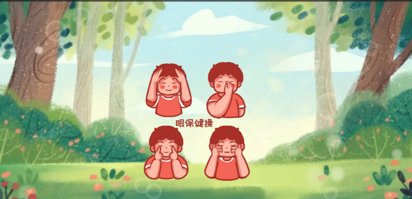 此外,智慧老人还教小明做眼保健操:“每天做2~3次眼保健操,能促进眼部血液循环,缓解视疲劳,有助于预防近视。”
