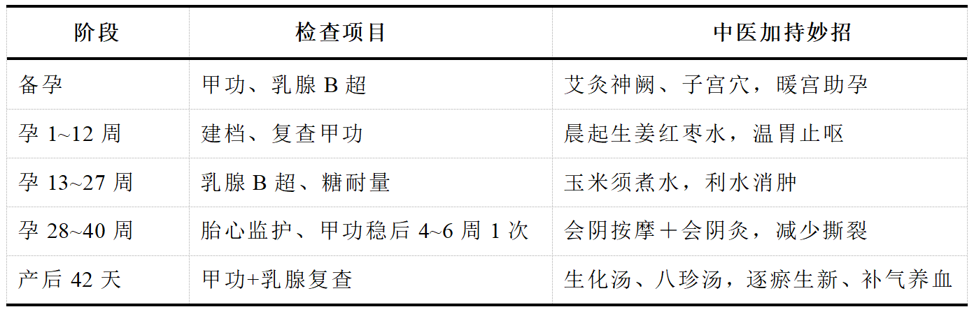 甲状腺稳,胎儿智商不掉线;乳腺通,妈妈喂奶不痛苦。中医讲“治未病”,西医讲“循证管理”,其实都是提前一步,把风险掐在萌芽。备孕时查一查,孕期里调一调,厨房里煲一煲,生活里笑一笑。十月怀胎,一朝分娩,当宝宝含着母乳甜甜睡去,我们会倍感欣慰。