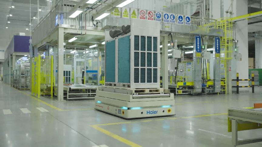 海尔胶州中央空调互联工厂自动化生产线。受访方供图