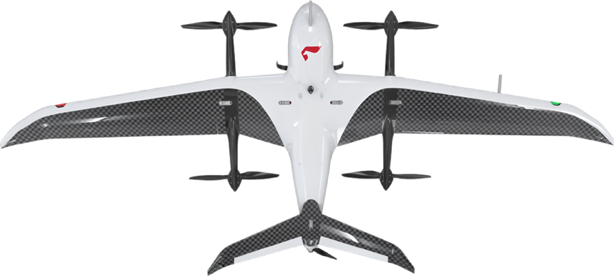 无人机分为旋翼和固定翼两类。旋翼无人机能悬停,适合拍视频,但费电、续航时间短。固定翼无人机飞行快、载重大,适合大范围调查。我们海洋监测中用的主力机型能飞行4小时,半径50公里,速度70公里/小时。可以看到它的翅膀上配有4个螺旋桨,主要作用在起飞和降落的时候能够像旋翼飞机一样实现垂直起降,实用性极高。