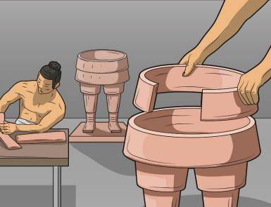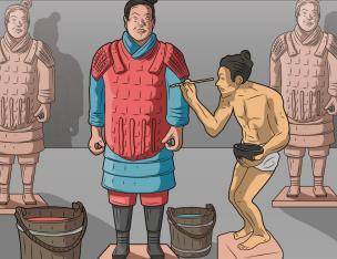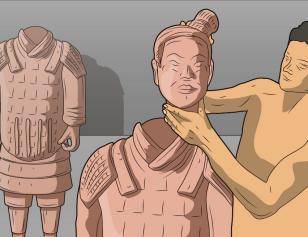 秦始皇陵的建造耗时38年左右,动用了约72万名工人。这座陵墓是个地下宫殿,充满了地窖和墓穴,以便收纳秦始皇需要且希冀带至来世的所有物品。其中包括兵马俑和其他雕塑品(如军官、文官、杂技演员和马匹)。不过,这些陶制品并非陵墓中唯一的陪葬品。这位残暴的君王也希望一些仆人、官员和妃子能以血肉之躯与他一同前往来世。在陵墓周围的地窖中,就发现了上述不幸之人的遗骸,其中有些人可能遭到活埋。