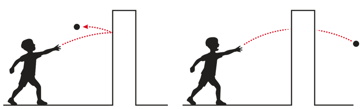 宏观世界中的小球,想要跨越面前的墙壁,需要足够的能量(左);而微观世界的小球则可能直接“穿墙而过”