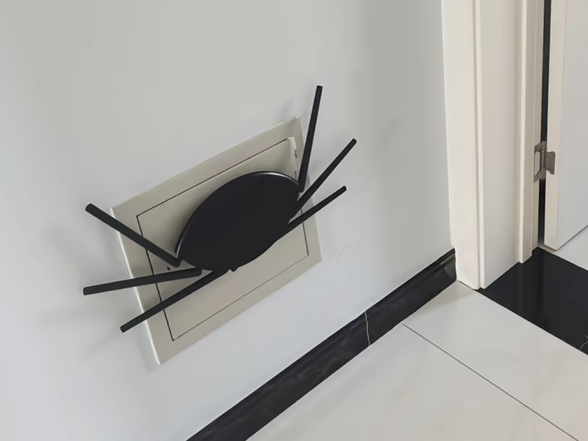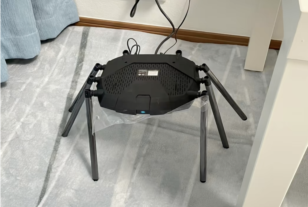 当然了,如果你把路由器摆成这种“赛博蜘蛛”的形状也是完全可以的,因为天线虽然倒过来了,但它本质上也是垂直于地面的(而且你还能让别人觉得你家的路由器很酷)。