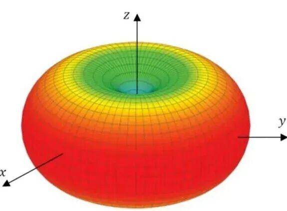 路由器的天线在向外发射信号的时候,并不是从尖端向外发射的,而是以天线为中心(即天线作为下图中的 Z 轴)呈现甜甜圈状向外扩散的。