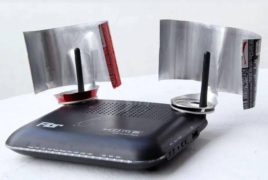 一种内置天线的路由器,图片截取自网店页面另外,之前网上流传过一种方法,说是只要把易拉罐(或者铝箔纸)套在天线后面,把天线的信号朝着你所在的方向反射,能够增强信号。