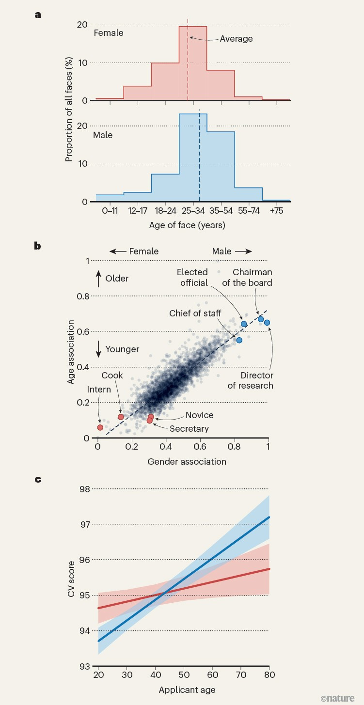 10月8日发表于Nature的一项大数据分析揭示,网络媒体和AI中存在着普遍且一致的系统性偏见:对于同等职业和社会角色,女性被描绘得比男性更年轻、经验更少。这种歪曲不仅反映了根深蒂固的社会偏见,还通过AI被进一步放大。