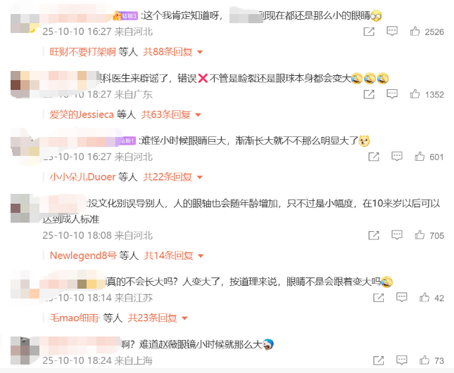 微博截图先说答案:这是个误区。视频将眼睛大小等同于睑裂大小,这种说法是错误的。一般来说,眼睛就是我们的眼球,它会随着年龄增长逐渐增大,至成年时大小基本稳定。