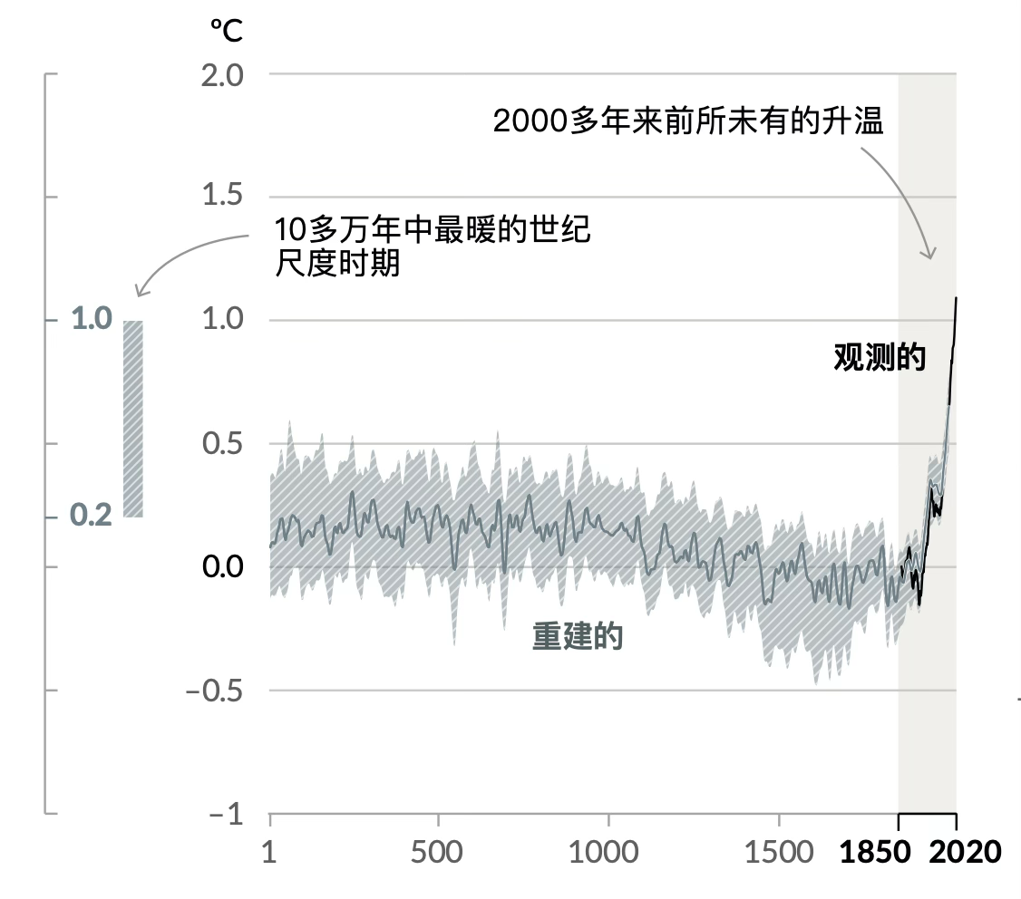 2021年IPCC报告的“冰球杆曲线联盟”,来自IPCC报告图3.2(第432页)(IPCC, 2021)