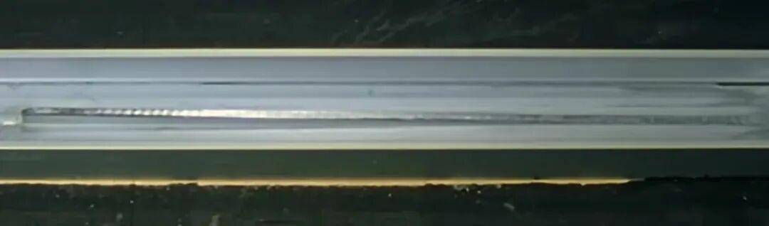 而给内芯小饼坯压出凹槽的原理,如下方的简化左视图所示。值得注意的是,工厂里本来是弯道的,这里简化成了直道,不妨碍我们理解原理。