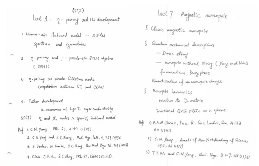 图1. 《杨振宁先生代表作导读》两讲的提纲:η配对和磁单极。
