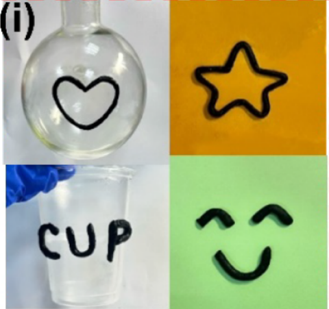 研究团队把嚼过的口香糖(已经洗净杂质)扔进MXene的水溶液里,然后开始揉面团:反复拉伸、对折、再拉伸、再对折……整整几十个循环。每拉伸一次,口香糖内部的微孔就会吸入一些MXene悬浮液;每对折一次,这些纳米片就被压实、贴合得更紧密。最后,原本黏糊糊、白花花的口香糖,变成了深灰色、略带金属光泽的柔韧复合材料。显微镜下可以看到,MXene纳米片像千层饼一样整齐地夹在口香糖的分子链之间,原本的气孔已经被填满。测试数据显示,这种材料的电导率飙升到了400 S/m,已经达到了某些导电橡胶的水平。而且它还发挥了当初口香糖最棘手的特性:超强的粘附性。我们可以把它贴在玻璃上、金属上、木头上、塑料上,甚至直接贴在皮肤上,它都能牢牢粘住,而且撕下来不留痕迹。研究人员做了个演示:把这种材料捏成各种形状:爱心、笑脸、字母,然后分别贴在不同基材上,再用它们连接LED灯珠组成电路。所有的图案都能正常导电发光,而且可以随意弯折、拉伸。