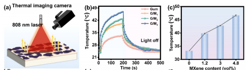 不仅有了导电材料,口香糖也不需要继续嚼了。用咀嚼的机械能发电,功率上限依然很难突破。毕竟下颌运动的能量就那么多,再怎么优化材料,也改变不了巧妇难为无米之炊的困境。那电从哪里来呢?还是依赖于MXene的材料特性:极致的光热转换能力。