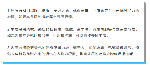 所以,除了别穿太多层,冬天也别穿太紧,尤其是外套要稍微宽松一些。其实可以在内层制造额外的空气层,获得更好的保暖效果。穿着舒适感提高了,温度也提高了。