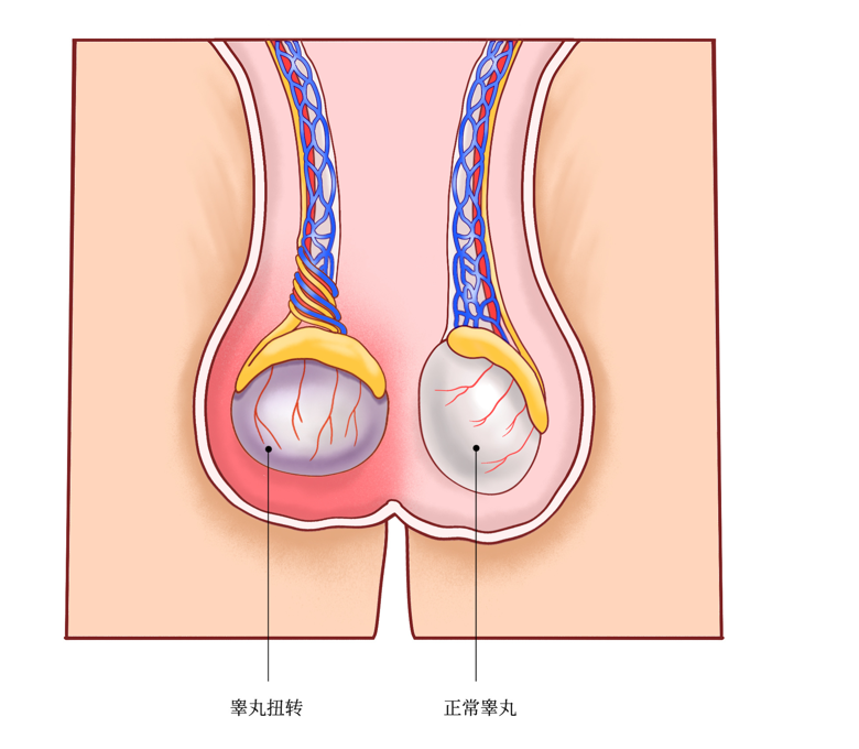睾丸扭转(又称精索扭转)是指睾丸与精索沿纵轴发生扭转,导致精索内血管受压牵拉,进而引发睾丸急性缺血。正常状态下,睾丸通过精索动脉获取氧和营养,静脉负责排出代谢废物,而扭转会直接阻断血液循环,造成睾丸因缺血受损。