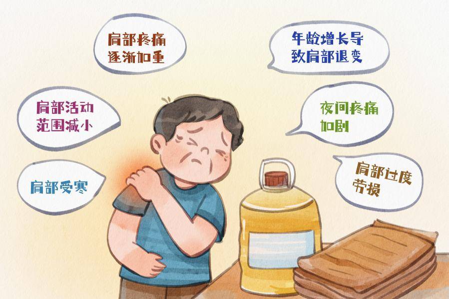 肩周炎全称为肩关节周围炎,为临床常见的肩部疾病。从发病原因来看,长期姿势不良是诱发肩周炎的常见因素,如长时间保持固定的姿势,肩部肌肉、肌腱处于紧张状态,久而久之易引发肩周炎。摔倒时肩部着地、过度运动导致肩部拉伤等肩部外伤,若治疗不及时或不彻底,也会诱发肩周炎。糖尿病、甲状腺功能异常等内分泌疾病患者,以及肩部术后长期制动的人群,肩周炎发病率也明显升高;机体免疫功能紊乱也可能通过影响肩部软组织修复,增加疾病发生风险。此外,随着年龄的增长,肩关节周围肌肉、肌腱、滑囊等软组织会出现退行性改变,弹性降低、修复能力下降,进而增加患肩周炎的风险。从症状表现来看,肩部疼痛最为典型,且与肩关节活动密切相关:疾病初期多为间歇性钝痛,休息后可缓解,活动(如抬臂、旋转肩部)时疼痛加重;随着病情发展,疼痛会逐渐加重并转变为持续性疼痛,夜间尤为显著,常影响患者的睡眠质量。