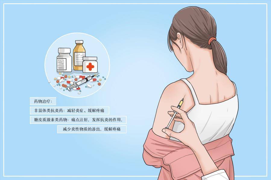 手法按摩能够松解粘连的组织,物理治疗(如热敷)可以促进局部血液循环,缓解肌肉紧张;适当的运动锻炼可以改善肩部活动受限的状况,如体操练习、手指爬墙练习、患侧手臂上举、甩手锻炼、双肩内收外展运动、弯腰晃肩法。当肩周炎处于急性期疼痛显著时,可以采取药物治疗,通过非甾体抗炎药减轻炎症和疼痛;症状较为严重的患者需进行局部封闭治疗,以快速缓解疼痛不适。若上述保守治疗效果不佳,症状持续恶化,则需要进行手术治疗,医生会根据患者的具体情况选择合适的治疗方式(如关节镜微创手术治疗),帮助患者恢复肩部功能。