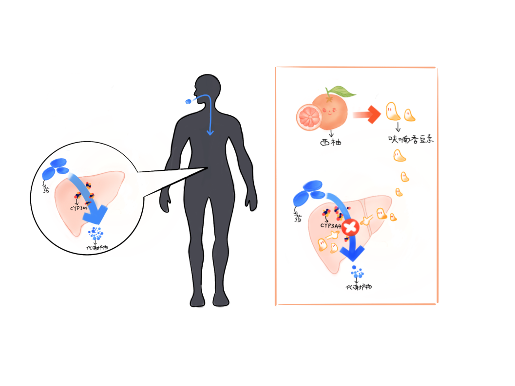 既然西柚不属于一般意义上的柚子,那么正在进行抗肿瘤治疗的患者是否可以食用普通柚子呢?这就必须提到一种名为“细胞色素P450 3A4(CYP3A4)”的代谢酶。它是人体中负责药物代谢的“关键酶”,大多数药物需经由其在肝脏、肾脏和肠黏膜等部位进行生物转化,变成易于排泄或发挥药效的形态。超过50%的临床药物依赖CYP3A4进行代谢,其中包括降压药、安眠药及抗肿瘤药物。