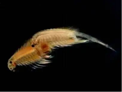 丰年虾又称盐水丰年虫、卤虫、卤虾等,距今已有2亿年历史,是地球上现存较为古老的物种之一,比恐龙出现得还早,妥妥的“活化石”。它是一种体型极小的甲壳类生物,成虫雌虫体长1.0~1.5厘米,雄虫仅在0.7厘米左右。