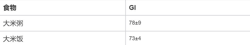 根据悉尼大学发布的《国际血糖指数和血糖负荷值表(2008 版)》,大米饭(白米)的 GI 值约为 73,属于高 GI 食物。而用同样的大米熬成的粥,其 GI 值更是高达 78。 有的实验室测定,米粥产生的 GI 值甚至可以高达 87,显著高于米饭[3]。
