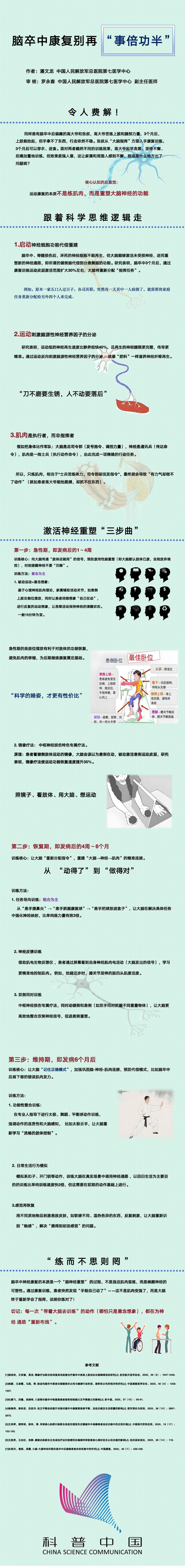 该科普作品主要讲述了脑卒中康复要跟着科学思维逻辑走,激活神经重塑“三步曲”,“练而不思则罔”等内容。