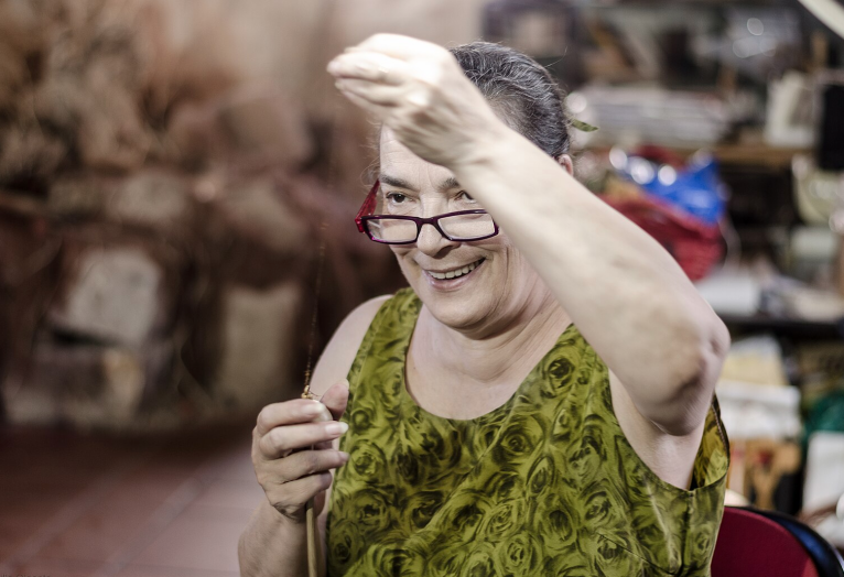 另一方面是因为还拥有海丝编织技艺的人已经非常少了,维戈就是其中之一。而且在维戈家族中,海丝工艺是“传女不传男”的,她也正在教自己的小女儿这项技艺。