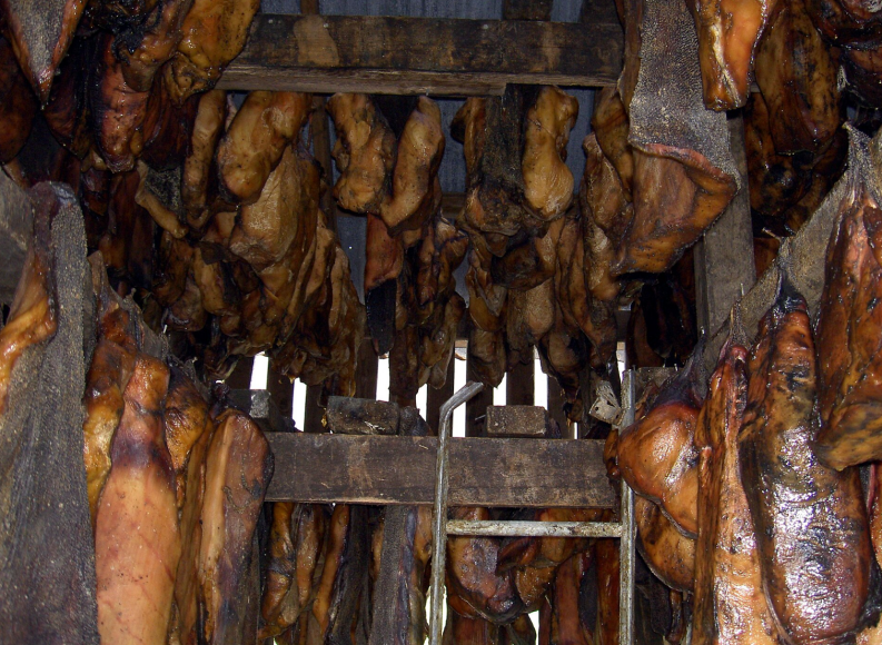 乍一看有点像我们平常吃的腊肉。但你要是这么想可就“太单纯”了。很多尝过这种“美食”的博主们都认为,这种食物有一种强烈的尿骚味。
