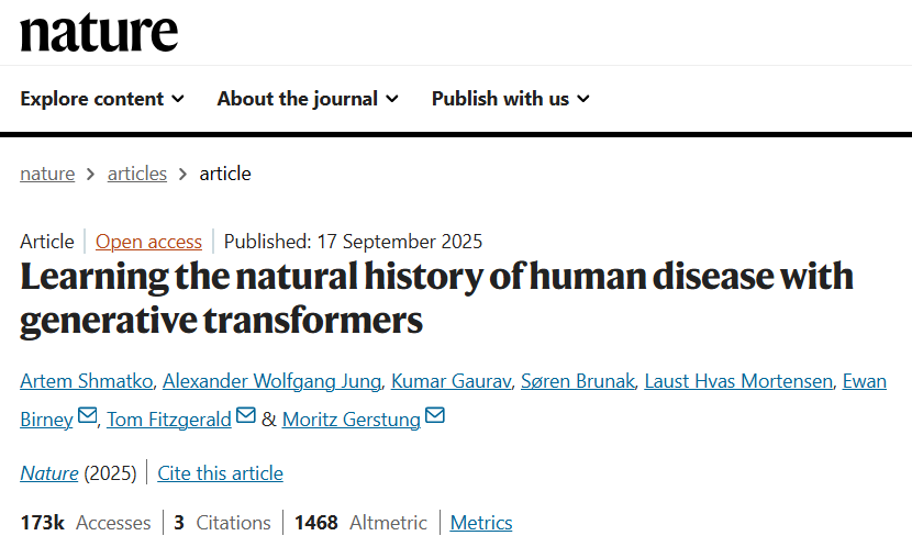 [1] Shmatko, Artem, et al. "Learning the natural history of human disease with generative transformers." Nature (2025): 1-9.