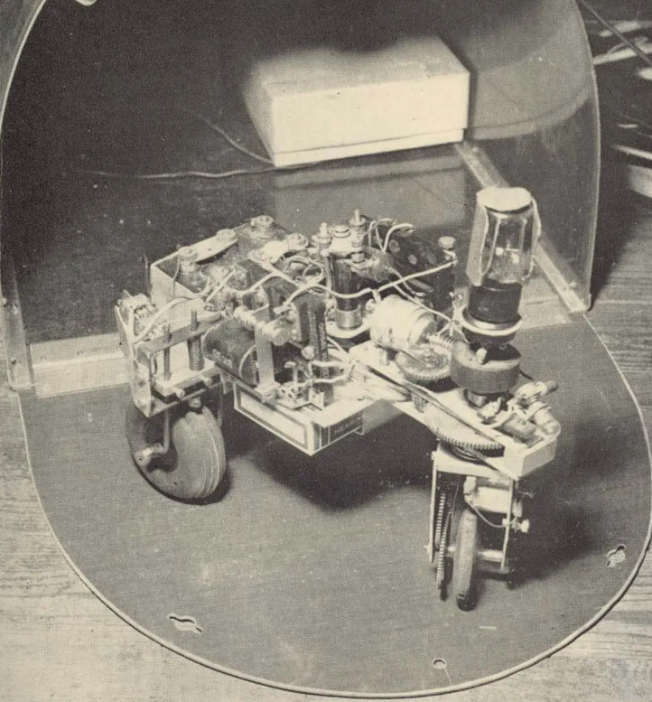 ——稳态机,能在各种变化的外界条件下自行组织,以达到稳定状态,这是他幻想的人造大脑的最初雏型、提出了机器人的最早设想。这台由皇家空军炸弹控制单元改造的机器,虽布满真空管与充水电位器,却首次实现了“在环境扰动中自行稳定”的奇迹,被《时代》周刊后来评价为“人类迄今最接近人造大脑的发明”。