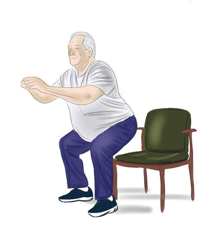 (1)抗阻训练:每周3次“椅子深蹲”,每组10次,动作缓慢平稳(抗阻训练可显著增加肌肉量,训练时注意安全防护)。