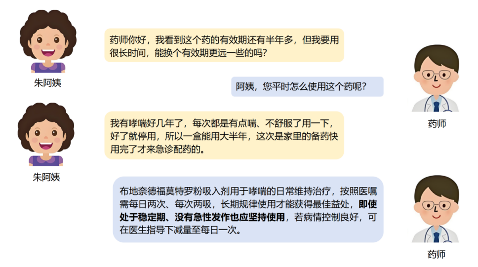 患有哮喘的朱阿姨来到急诊药房配药——布地奈德福莫特罗粉吸入剂。