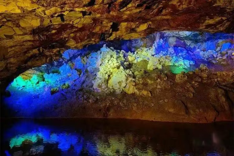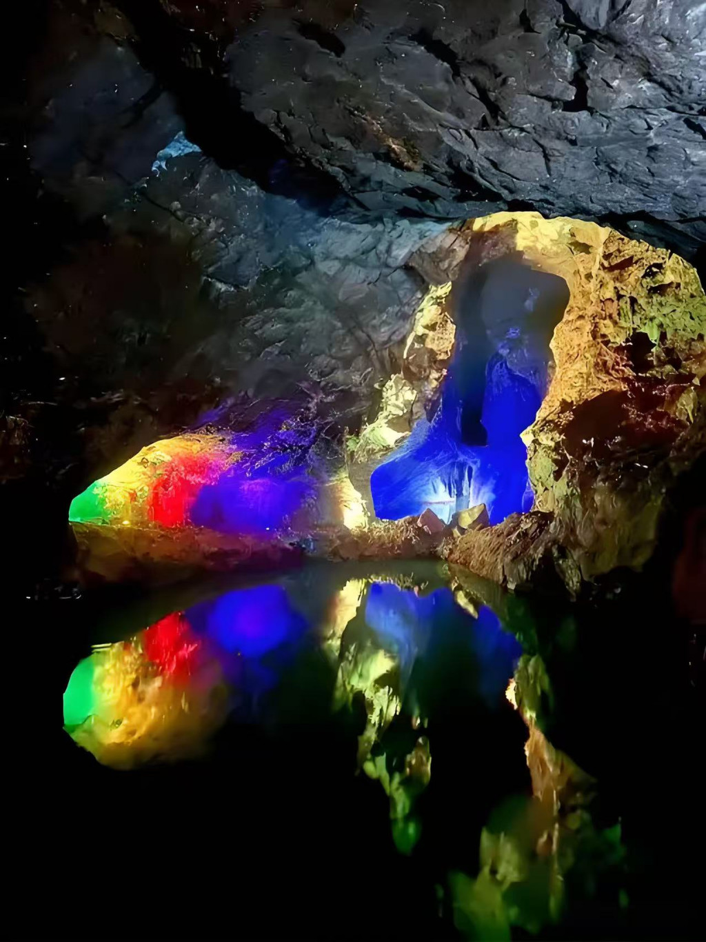 坐上特制的观光小火车,沿着改造后的轨道缓缓前行。洞壁之上,天然的萤石、水晶、硫铁矿错落分布,星星点点的,恰似夜幕中闪烁的璀璨宝石,散发着迷人的光芒。